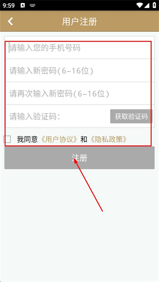 3、輸入手機號碼、密碼、驗證碼,勾選協(xié)議,點擊注冊。