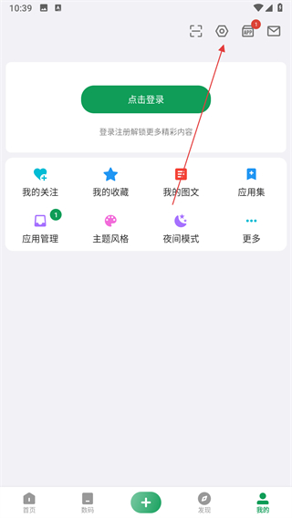 1、打開(kāi)酷安APP,點(diǎn)擊右上角的設(shè)置圖標(biāo)。