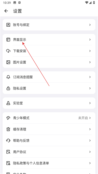 2、在設(shè)置頁(yè)面,點(diǎn)擊界面顯示選項(xiàng)。