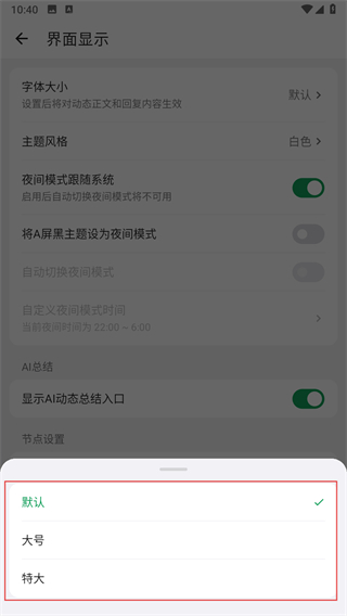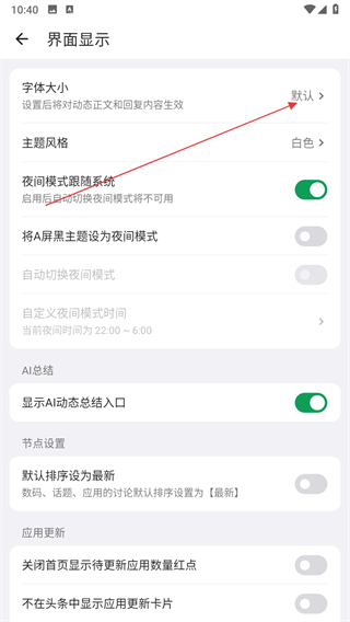 3、在界面顯示頁(yè)面,點(diǎn)擊字體大小選項(xiàng)。