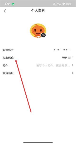 3、進(jìn)入到個(gè)人資料頁(yè)面,點(diǎn)擊淘寶昵稱選項(xiàng),進(jìn)行修改昵稱。