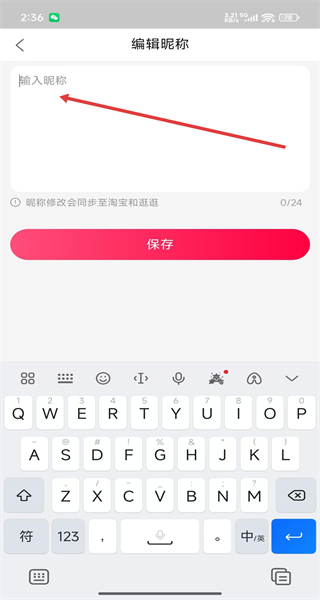 4、可以在輸入框中,填寫要修改的昵稱,點(diǎn)擊保存按鈕,即可完成修改操作。