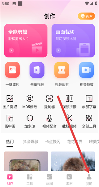 1、啟動剪意視頻剪輯的APP,進入時點擊底部工具的按鈕。