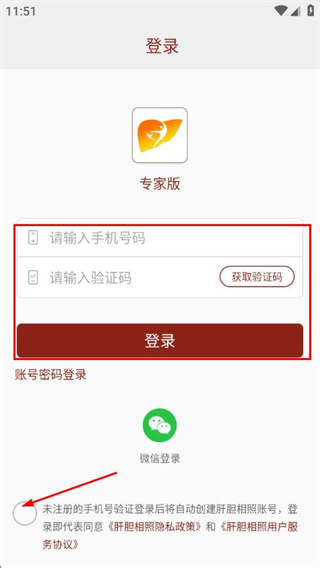 2、在登錄頁面輸入手機(jī)號碼,勾選后點(diǎn)擊獲取驗(yàn)證碼,輸入驗(yàn)證碼后點(diǎn)擊登錄。