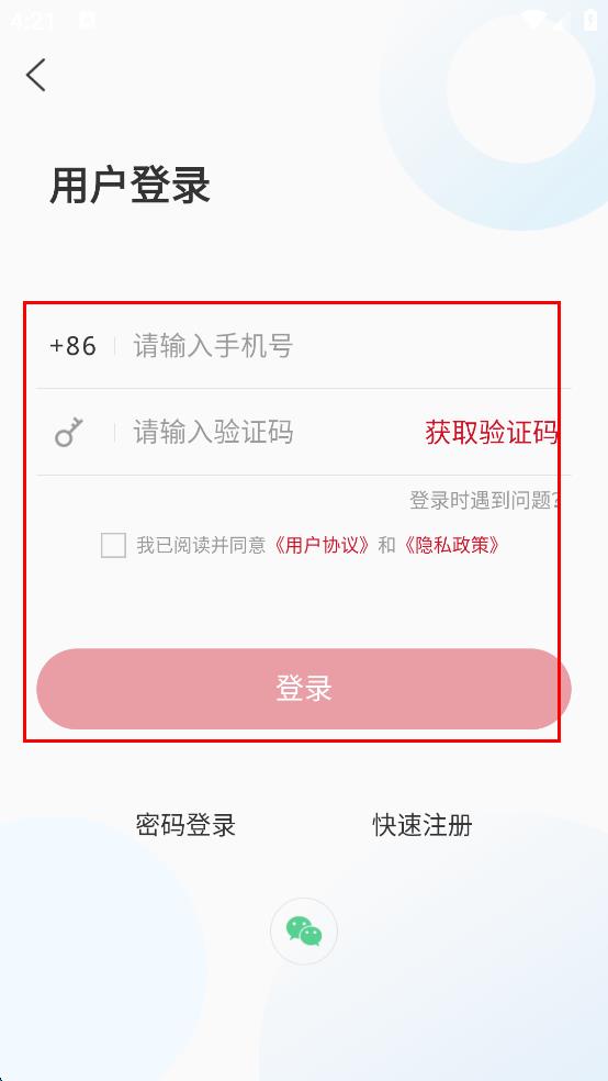 4、在用戶登錄界面,勾選我已閱讀并同意相關(guān)協(xié)議,再輸入手機(jī)號(hào)和驗(yàn)證碼進(jìn)行登錄。