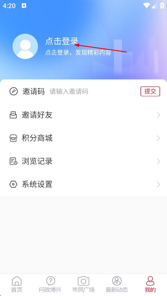 3、在個(gè)人頁(yè)面,點(diǎn)擊上方點(diǎn)擊登錄按鈕,進(jìn)入用戶登錄界面。