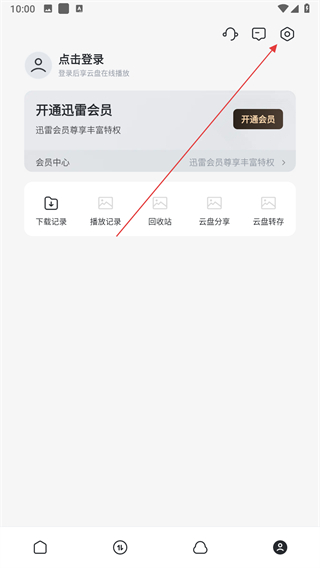 1、打開迅雷APP,點擊右上角的設(shè)置圖標(biāo)。