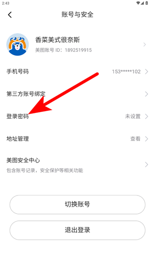 3、在賬號與安全頁面點(diǎn)擊登錄密碼,進(jìn)入安全驗(yàn)證頁面。