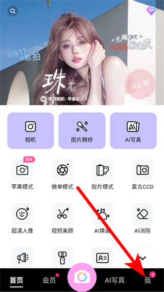 1、打開美顏相機(jī)APP,點(diǎn)擊右下角我,進(jìn)入個人頁面。