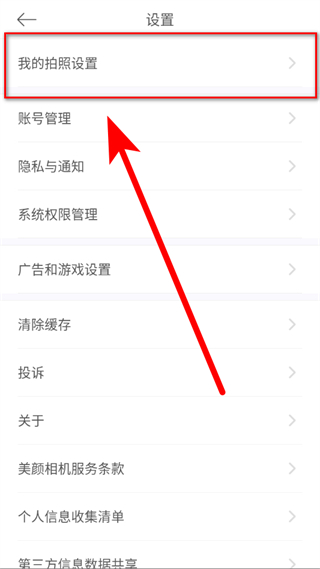 3、在設(shè)置頁面點(diǎn)擊我的拍照設(shè)置,進(jìn)入我的拍照設(shè)置頁面。