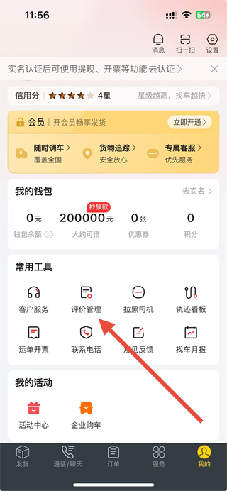 1、在貨車幫貨主app界面點擊我的選項,進入個人相關頁面。