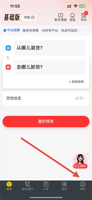 1、打開貨車幫貨主APP,點擊底部導航欄中的我的。