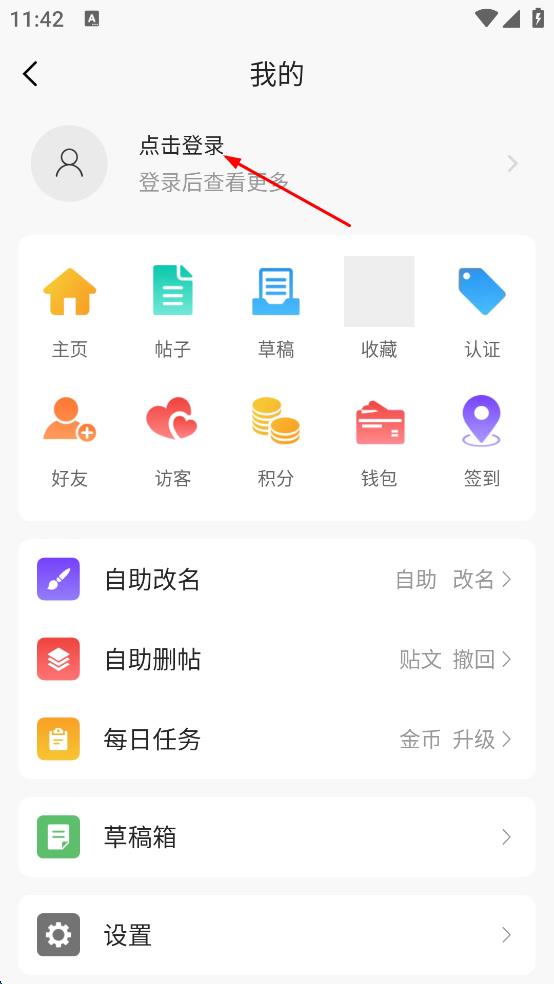 2、在“我的”頁面,點擊“點擊登錄”選項。