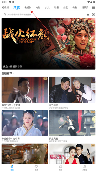 1、打開PP視頻的APP,進(jìn)入首頁點(diǎn)擊上方電視劇的標(biāo)簽。