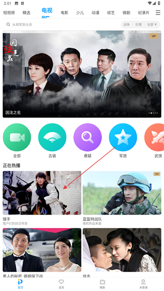 2、進(jìn)入電視劇的頁面內(nèi),在正在熱播下點(diǎn)擊要播放的電視劇。