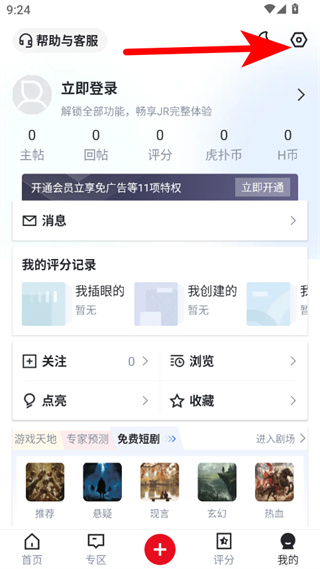 2、在個人界面,點擊右上角設(shè)置圖標,進入設(shè)置頁面。