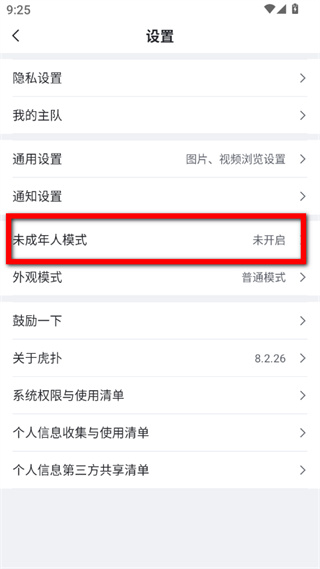 3、在設(shè)置頁面,點擊未成年人模式選項,進入對應(yīng)設(shè)置界面。
