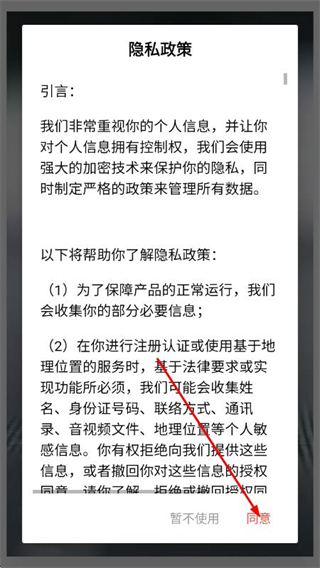 1、打開Hi運(yùn)動APP,在隱私政策彈窗中點(diǎn)擊同意。