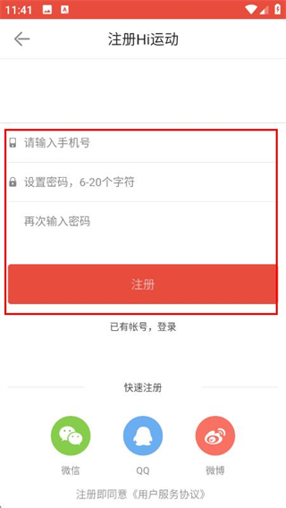 3、輸入手機(jī)號、設(shè)置密碼并再次輸入密碼,點(diǎn)擊注冊。