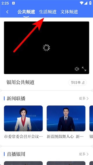 2、在電視頻道頁面中,點(diǎn)擊生活頻道標(biāo)簽,切換到銀川生活頻道界面。