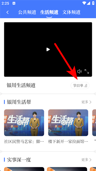 3、在銀川生活頻道界面,點(diǎn)擊節(jié)目單,進(jìn)入節(jié)目單詳情頁面。