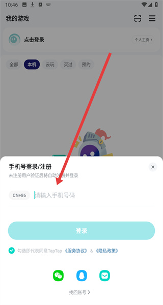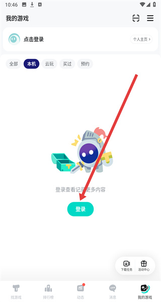 1、在進(jìn)入到taptap首頁(yè)中,可以點(diǎn)擊下方我的游戲,進(jìn)入我的主頁(yè)。