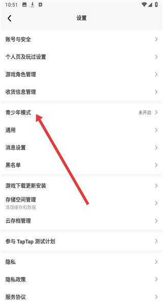 3、在設(shè)置頁(yè)面點(diǎn)擊“青少年模式”選項(xiàng)。