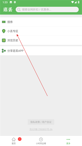 2、在更多功能頁面,點擊小丟專區(qū),進入小丟專區(qū)的頁面。