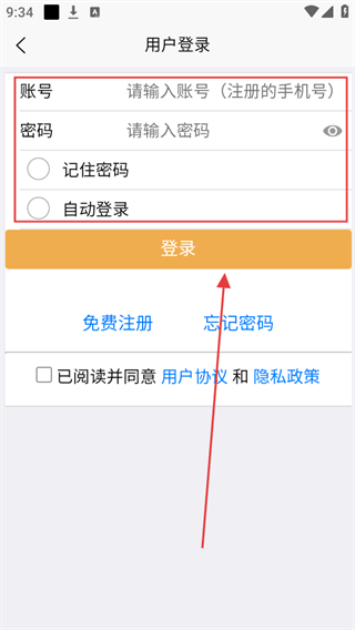 3、在用戶登錄頁(yè)面,示輸入手機(jī)號(hào)等相關(guān)信息,輸入賬號(hào)密碼點(diǎn)擊登錄。