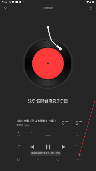 3、然后點(diǎn)擊音樂(lè)最右邊的豎著的三個(gè)...會(huì)彈出彈窗;