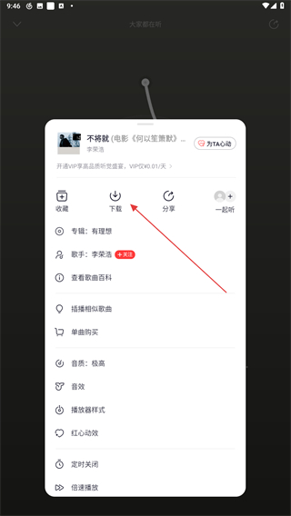 4、可以看到有很多功能我們選擇收藏到歌單就能進(jìn)行歌曲的收藏;