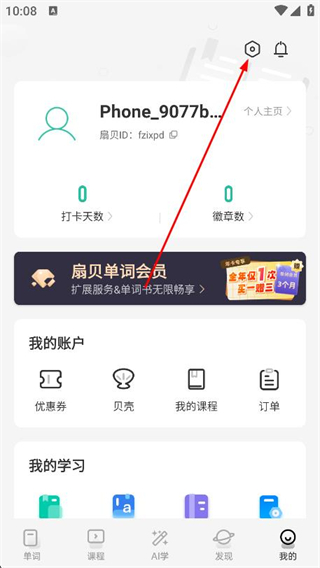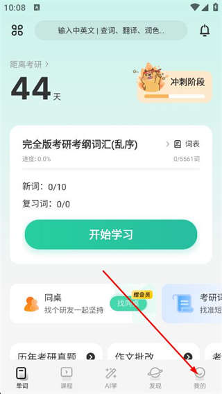 1、打開扇貝英語,點擊底部導(dǎo)航欄我的選項。