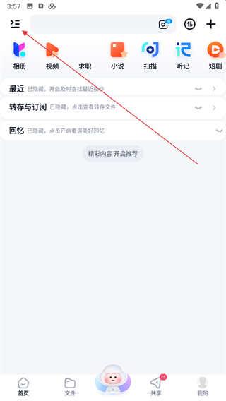 1、打開百度網(wǎng)盤APP,點(diǎn)擊三條橫線菜單圖標(biāo)。