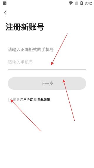 4、輸入手機(jī)號,勾選后,點(diǎn)擊下一步。