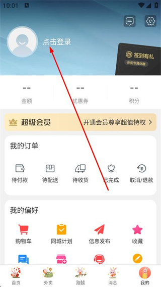 2、在我的頁(yè)面中,找到并點(diǎn)擊上方的點(diǎn)擊登錄區(qū)域。