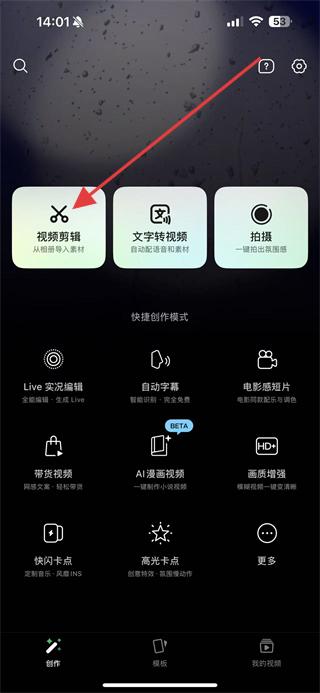 1、打開妙剪應(yīng)用,點擊視頻剪輯選項,從相冊中選擇需要剪輯的視頻素材。