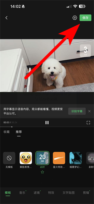 4、完成視頻剪輯后,點擊右上角保存按鈕,即可保存剪輯好的視頻。