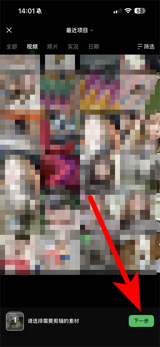 2、勾選視頻素材后,點擊下一步進入視頻剪輯界面。