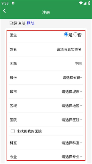 4、在注冊(cè)頁(yè)面填寫(xiě)醫(yī)生相關(guān)信息。