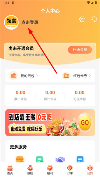 2、在個(gè)人中心頁面,點(diǎn)擊點(diǎn)擊登錄,進(jìn)入登錄方式選擇界面。