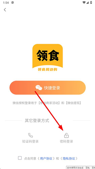 3、在登錄方式選擇界面,點(diǎn)擊密碼登錄,進(jìn)入密碼登錄頁面。
