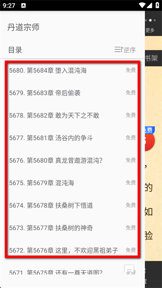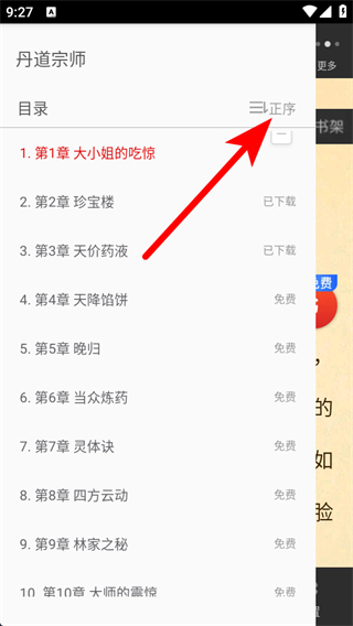 3、在目錄列表中,點(diǎn)擊正序按鈕,切換目錄排序方式。