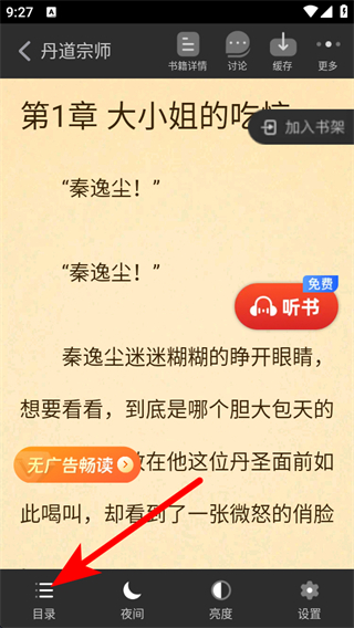 2、在書籍閱讀界面,點(diǎn)擊左下角目錄選項(xiàng),展開(kāi)目錄列表。