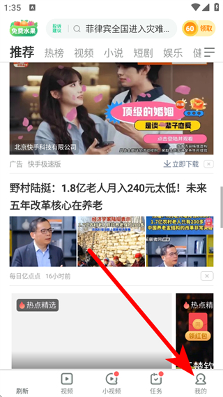 1、打開趣頭條APP,需要點(diǎn)擊底部我的按鈕,進(jìn)入個(gè)人的頁面。