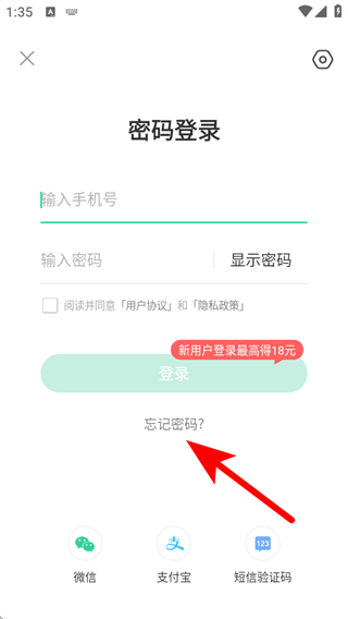2、在登錄的界面,我們需要點(diǎn)擊右下角密碼登錄的方式,進(jìn)入密碼登錄頁面。