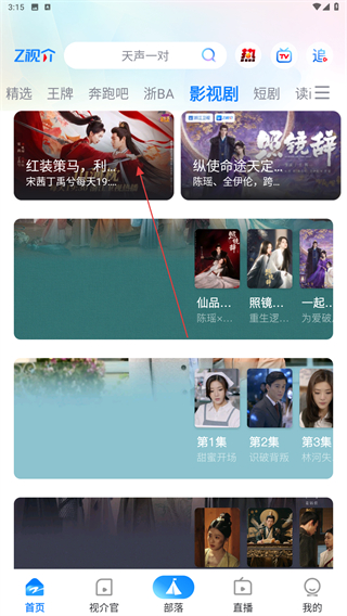 2、進(jìn)入影視劇的頁面內(nèi),選擇并點(diǎn)擊電視劇封面。