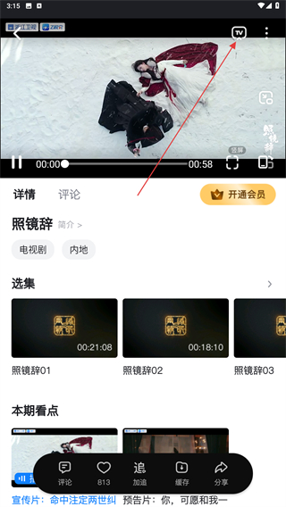 3、進(jìn)入播放的頁面內(nèi),點(diǎn)擊畫面上方TV的圖標(biāo)即可。