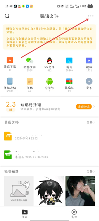 1、打開騰訊文件應(yīng)用,點(diǎn)擊三點(diǎn)菜單按鈕。