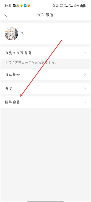 3、進(jìn)入文件設(shè)置頁面后,點(diǎn)擊隱私設(shè)置選項(xiàng)。