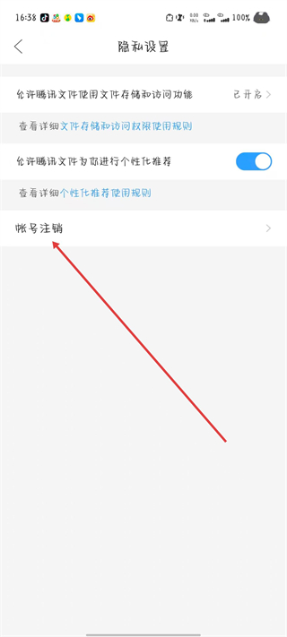 4、在隱私設(shè)置頁面,點(diǎn)擊帳號注銷選項(xiàng)。